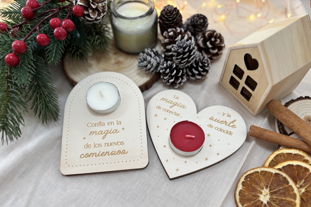 Grabados en madera natural, con frases que inspiran y una vela que invita a detenerse, respirar y disfrutar del ahora. Un detalle bonito y lleno de sentido para regalar (o regalarte) en cualquier momento del año❤️