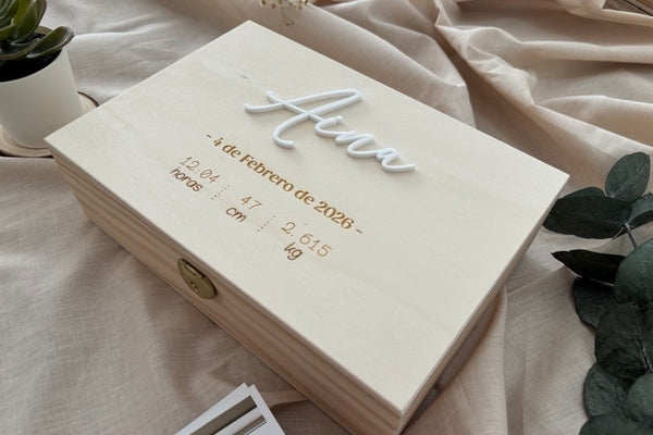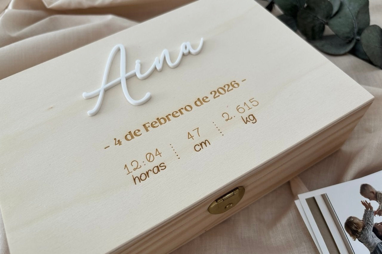 IMPORTANTE: Sólo se incluye la caja de madera personalizada vacía, el resto de elementos que aparecen en la fotografía del producto son decoración.